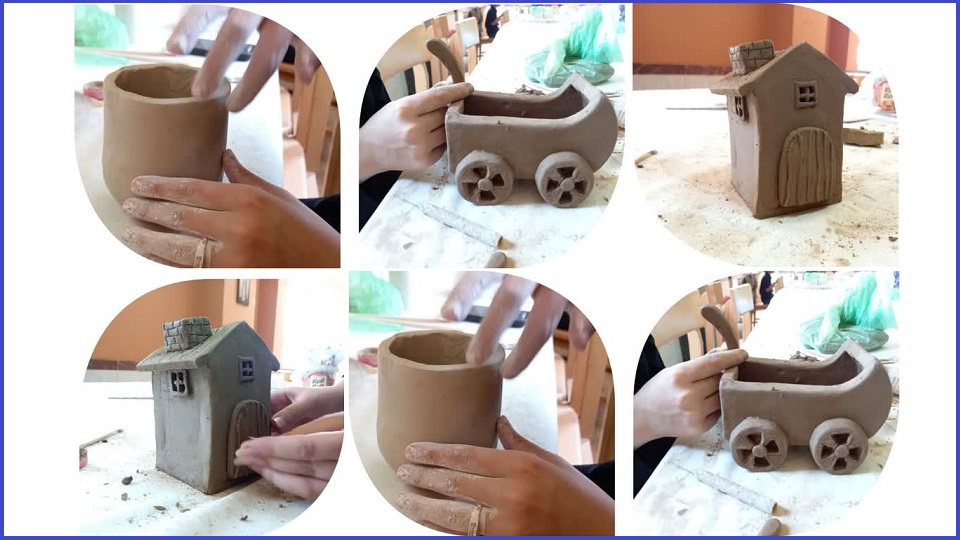 آثار هنرجویان کلاس سفال بزرگسال که در مرحله بعد در کروه قرار می گیرد و سپس رنگ آمیزی می شود