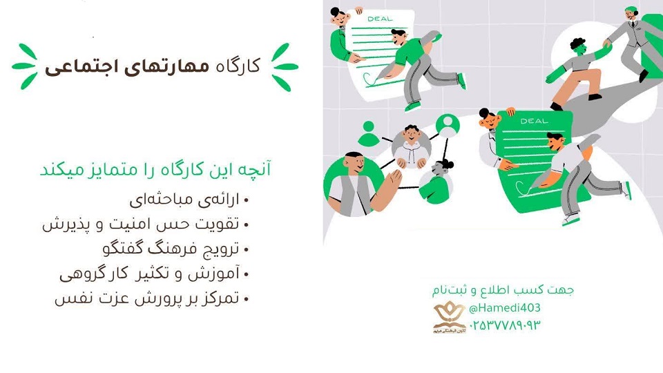 کانون فرهنگی مریم در نظر دارد کارگاه مهارت های اجتماعی (گروه سنی ۴ تا ۶ و ۷ تا ۱۳ سال) برگزار نماید.