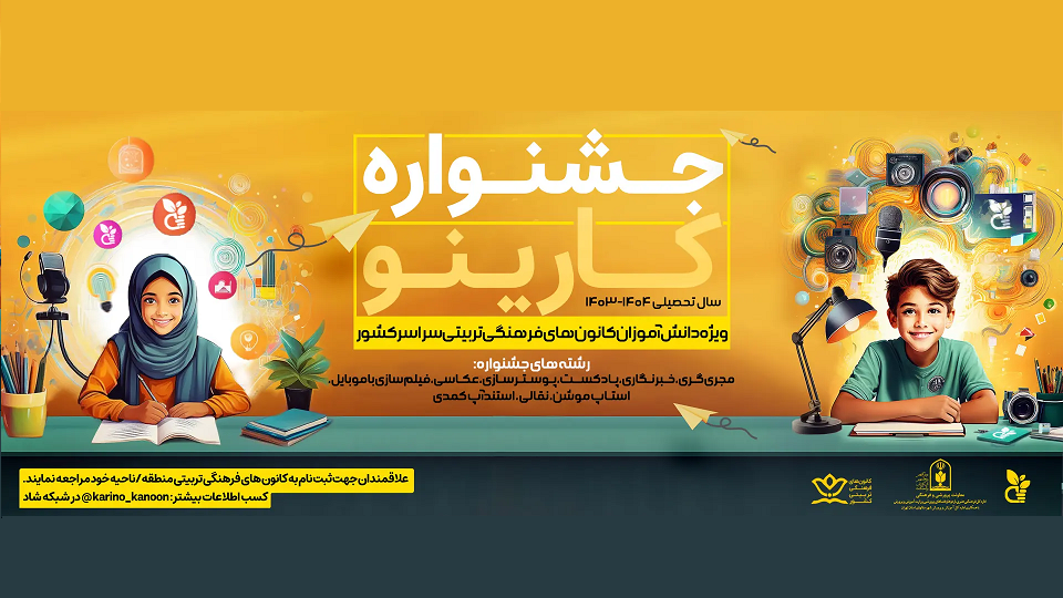 جشنواره کارینو ویژه دانشآموزان کانونهای فرهنگی سراسر کشور در 9 رشته مجریگری، خبرنگاری، پادکست، تصویرسازی، عکاسی، فیلمسازی با موبایل، نقالی، استندآپ کمدی و استاپ موشن برگزار خواهد شد. دانشآموزان ابتدایی فقط در سطح منطقه، دانشآموزان متوسطه اول در سطح منطقه و استان و دانشآموزان متوسطه دوم در سه سطح منطقه، استان و کشور با هم رقابت خواهند کرد.