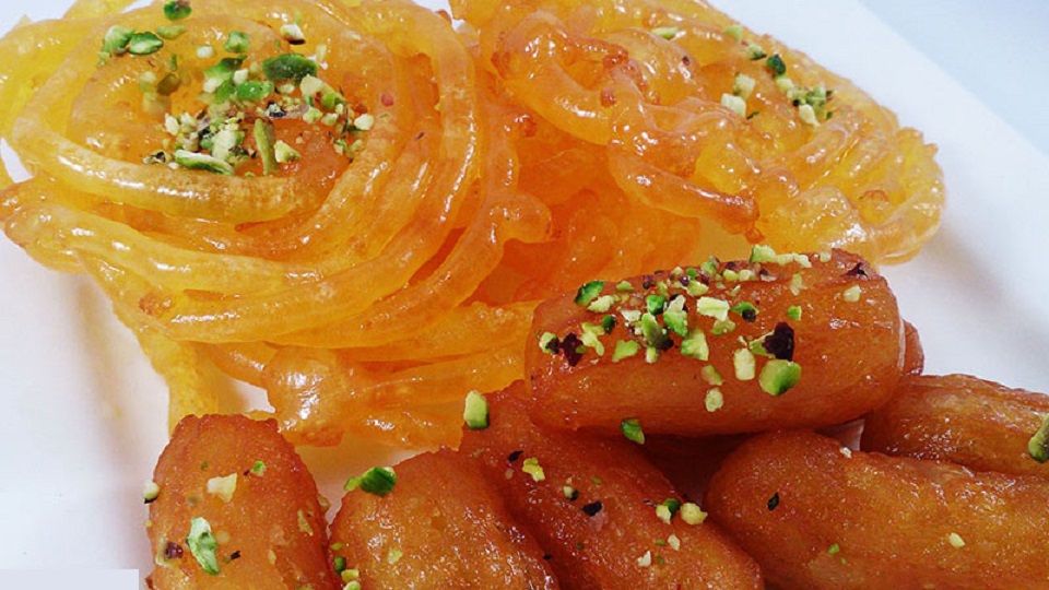 - زولبیا زعفرانی به همراه شربت بار مخصوص زولبیا