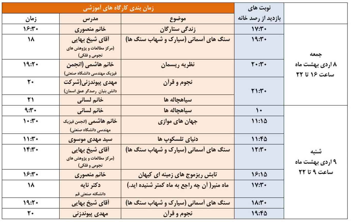 کانون مریم در نظر دارد به مناسبت هفته جهانی نجوم و با همکاری سازمان فرهنگی اجتماعی شهرداری قم، موسسه رصدگر بیکران، خانه نجوم قم، و انجمن های علمی دانشگاه های قم ویژه برنامه زیر چتر آسمان را با برنامه های متنوع زیر برگزار نماید: