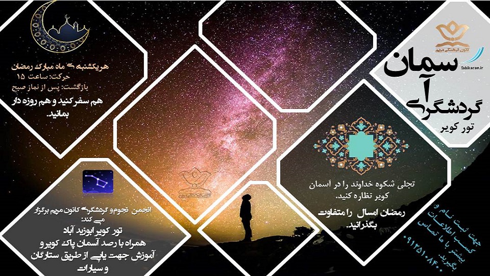 انجمن نجوم و گردشگری کانون مریم در نظر دارد تور کویر ابوزید آباد را همراه با رصد آسمان پاک کویر و آموزش جهت یابی از طریق ستارگان و سیارات برگزار نماید.