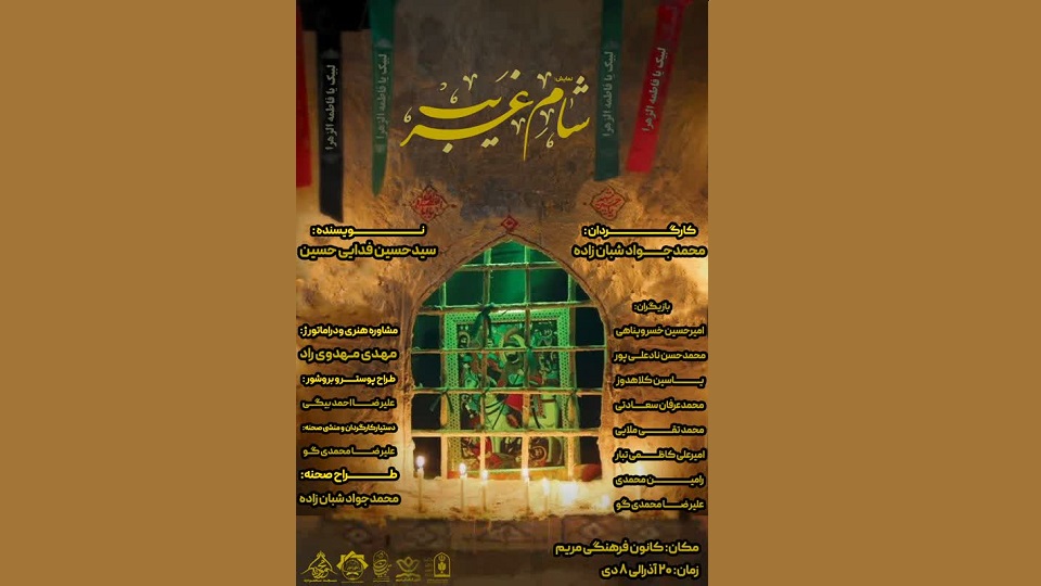 کانون فرهنگی مریم در نظر دارد تئاتر صحنه ای شام غریب را ویژه ایام سوگواری حضرت زهرا (سلام الله علیه) برگزار نماید: