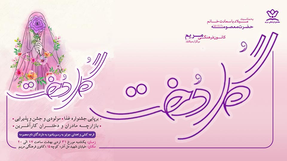 با عرض تبریک میلاد با سعادت کریمه اهل بیت حضرت معصومه ( س)، کانون مریم در نظر دارد جشنی را با عنوان گل دخت شامل برنامه های متنوع زیر برگزار می نماید: