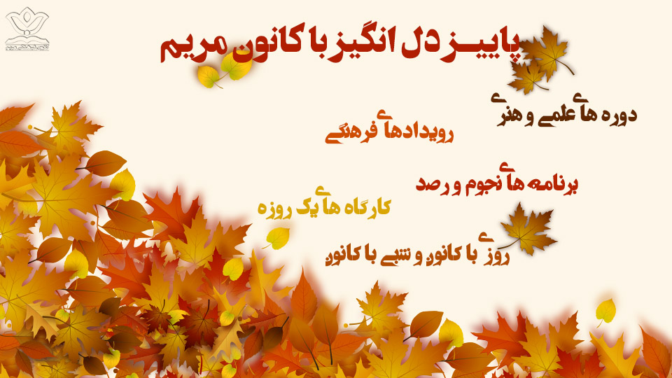 کانون فرهنگی مریم برنامه های جذاب و متنوعی را برای شما همراهان همیشگی تدارک دیده است؛ مهارت های جدید بیاموزید یا مهارت های خود را ارتقا دهید، از حضور در جمع همراهان کانون لذت ببرید و شاد باشید.