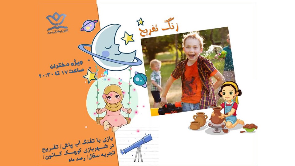 برنامه ها: بازی با تفنگ آبپاش، رصد ماه با دوربین دو چشمی، تفریح و تجربه سفال