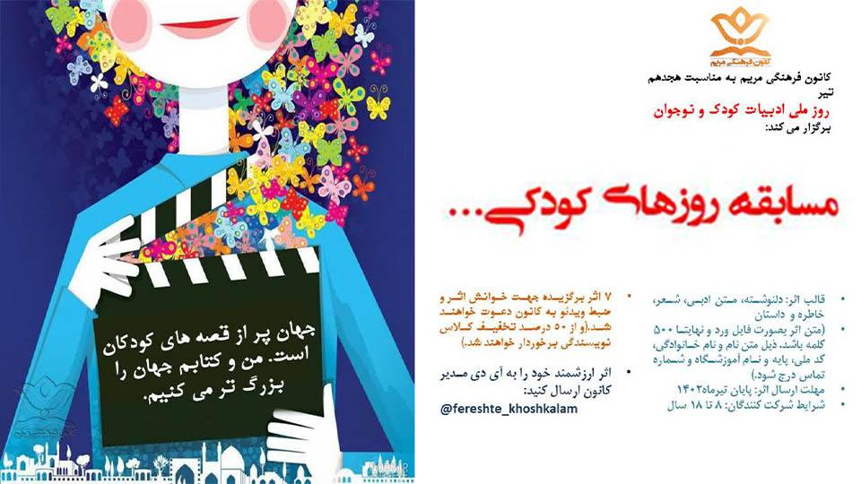 کانون فرهنگی مریم به مناسبت هجدهم تیر "روز ملی ادبیات کودک و نوجوان" برگزار میکند: «مسابقه روزهای کودکی ...»